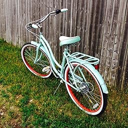 | 98 of 103 people found the following review helpful This review is from: Schwinn 26" Ladies Perla 7 Speed Cruiser Bike, 26-Inch, Blue (Sports) I love love love this bike! I purchased it in a store, in the box. The demo bike had a bent rim and the fender was crooked. Once the bike was fully put together by my husband I just couldn't stay off of it. The seat is adjustable upwards and downwards plus it can tilt forward and backward. I'm unsure if this is normal in bikes but I thought it was pretty cool. The breaks work great too, being that I haven't ridden a bike in 15 years, I used them a lot! I absolutely adore the color and love the embroidered stitching on the wide seat. 63 of 66 people found the following review helpful By pbandj (Sussex, WI) - See all my reviews This review is from: Schwinn 26" Ladies Perla 7 Speed Cruiser Bike, 26-Inch, Blue (Sports) This bike is what I expected for what I paid. It is not highest quality, but will work for amount I plan to ride. The wide seat and handle bar grips are comfortable for riding. Love the color & retro design.My suggestions to the manufacturer: 1. Improve packing at factory - box was completely open re-taped on 1 corner, multiple punctures through box, the packing material protecting bike was inadequate. However I did receive all the parts and bike was not damaged. 2. Add assembly video on You Tube: Assembly took about 2 hours -1 hour to assemble and 1 hour to adjust the brakes - I had a difficult time adjusting the front brakes to be equidistant from the front tire - finally solved problem by re-screwing front wheel to frame. Before you follow the instructions for fine tuning the brakes, suggest looking up linear bicycle brake adjustment videos on You Tube. These were more helpful than the instructions which were too basic and not helpful... Read more 37 of 39 people found the following review helpful This review is from: Schwinn 26" Ladies Perla 7 Speed Cruiser Bike, 26-Inch, Blue (Sports) I LOVE this bike. It was perfect for my style. The seat is wide and riding is comfortable. My complaints/suggestions would be: 1. The handlebar grips are not the same color as the bike. 2. Assembly is difficult if you have never assembled a bike before. Like another reviewer, it would be helpful to have an assembly video. The instruction booklet was not thorough. |